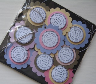 Here are a few examples that I made the other night to have on my craft stall at the weekend. So much fun to make - so quick and easy using the Stampin" Up! punches, a couple of stamps, some dimensionals, buttons, string and my beloved white gel pen.
