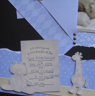 My time away was not totally devoid of stamping and scrapping - after all, my favourite subject (Tyler) was on hand the whole time, and Kari organized a couple of craft days with her friends. I was able to complete 4 layouts and do a bit more water-colouring in amongst kisses and cuddles for the baby.