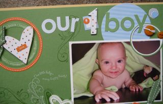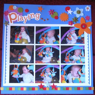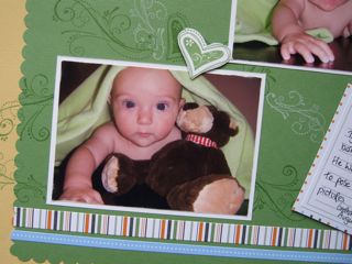 I've got a couple of photos for you to see. The first is a scrap page I made of Tyler playing after a bath. This isn't a recent photo - he is now 10 months old, but I've been meaning to scrap these photos for some time.