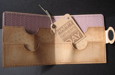 Inside the wallet I've used some Double-sided Designer Series Paper from the Round Up Pack to mimic a material lining inside the leather outer. The ever useful and wonderful Sanded Background stamp helped me to achieve the leather look.
