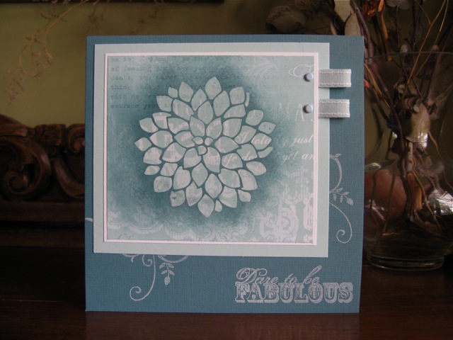 NOTE: I found that the DS Papers tend to absorb the ink more than regular card stock, so the ink needed to be re applied. I also added lots more of the Blue Bayou ink before I was happy with the result.