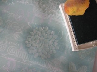 The other way of applying colour is to use your brayer (roller) and roll over the image. I thought with the design of this card that sponging was better as it leaves more of the beautiful back ground paper visible.