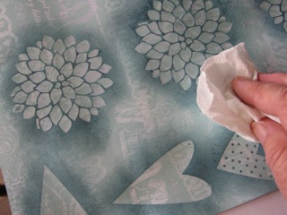Step 4. When you are satisfied with the amount of ink applied to the Designer Series Paper, buff the embossed image with some paper towel to clean off any excess ink. This will make the image nice and shiny too!